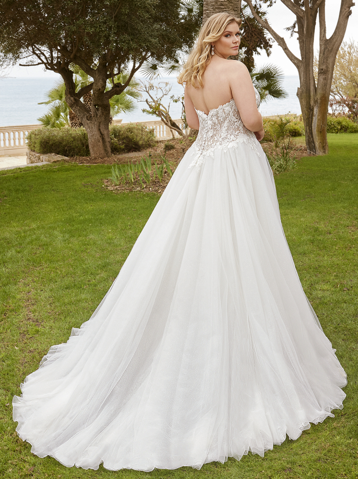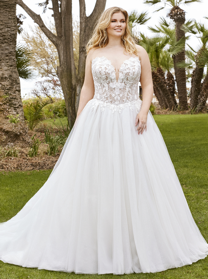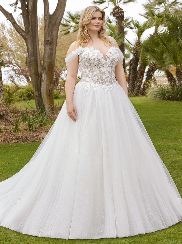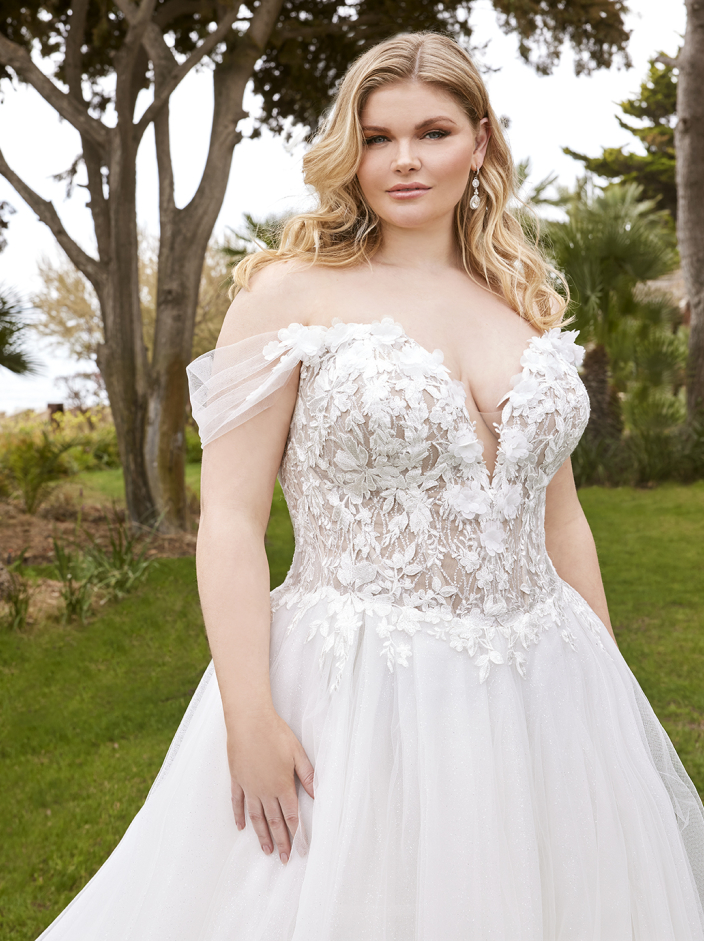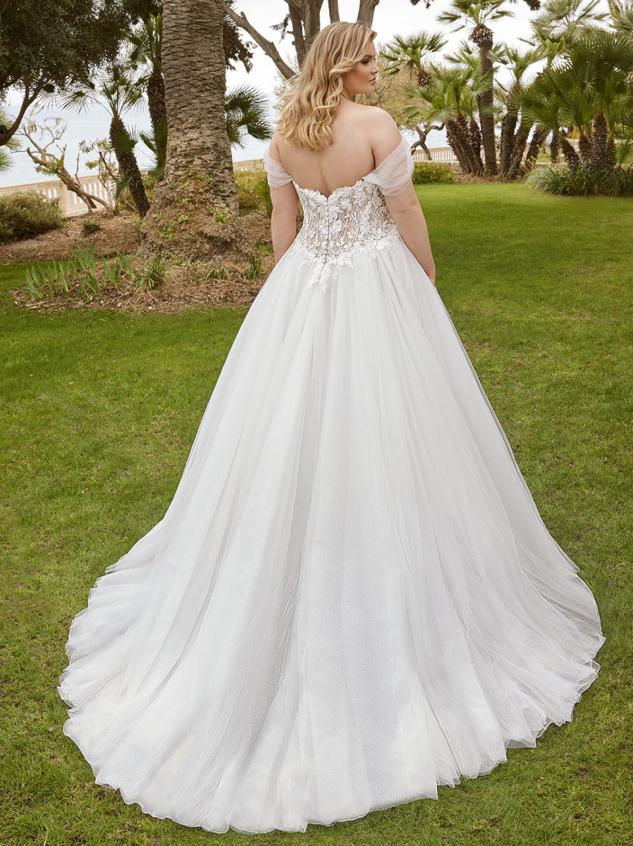 For brides who want to look like a dreamy princess on the big day, KORA x Édition will make your wish come true! This whimsical ball gown features extravagant 3D floral appliques delicately placed from the detachable tulle off-shoulder sleeves to the sparkling, deep sweetheart neckline corset bodice. And we cannot get over the soft, shimmering tulle skirt -- perfect for making your dramatic, stunning entrance.