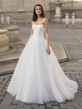 A princess wedding dress of our dreams! GEORGIANA is the epitome of modern and timeless. This Mikado ball gown with a classic curved neckline and amazing body-contouring seaming brings the right amount of drama while maintaining its minimalist beauty. GEORGIANA showcases two lovely looks in one with her detachable off-the-shoulder straps. And did you know she also has pockets?!