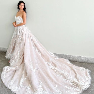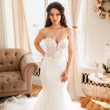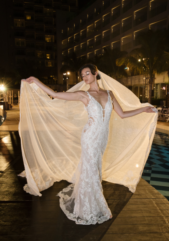 HARLOW has our jaws dropping! Her figure-flattering silhouette and plunging neckline is absolutely sexy!