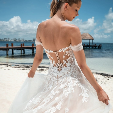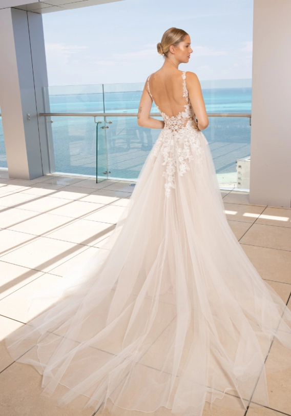 For brides looking for that perfect, dream-wedding fairytale gown... LÉA could be the one! She has a beautiful, soft A-line skirt with delicate lace that cascades down from the bodice... undeniably one of the most romantic gowns from the 2023 collection!