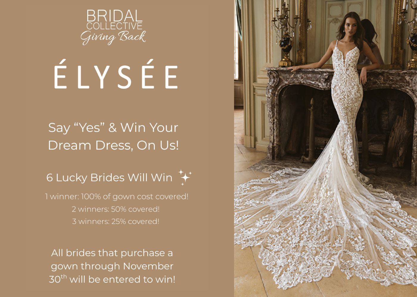 Now, as part of Bridal Collective’s 20th Anniversary, we’re giving six brides the extraordinary opportunity to win their dream ÉLYSÉE gown -- with up to 100% of the cost covered!