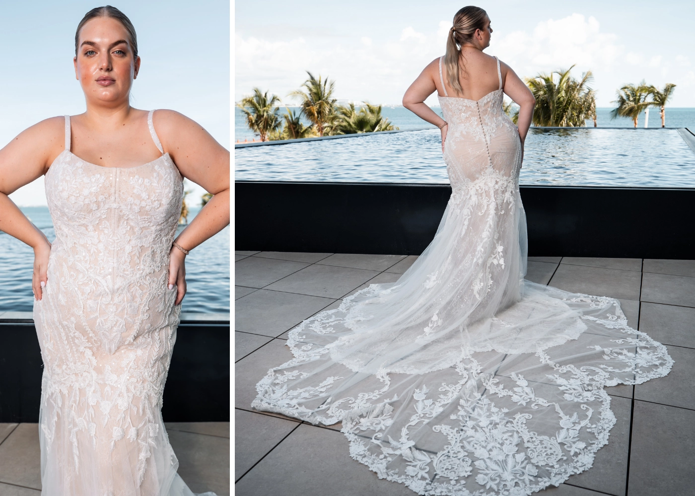 SIBYLLA x Édition, one of our favorites! Her curved neckline with the hand-beaded straps gives the perfect amount of support. We are obsessed with the linear lace design to accentuate the bride. It is simply *chef's kiss*!
