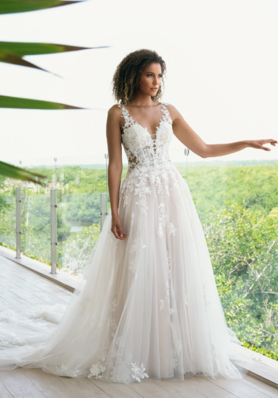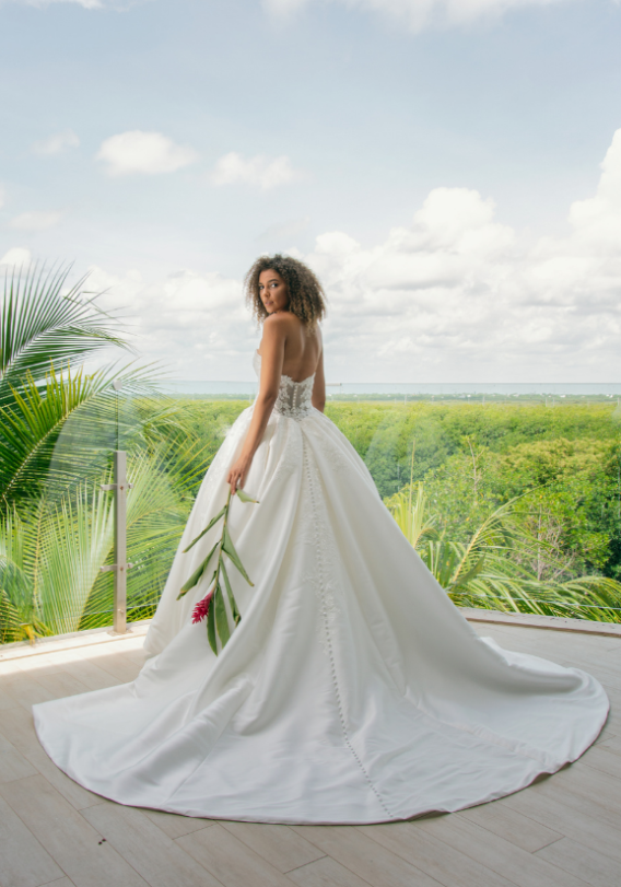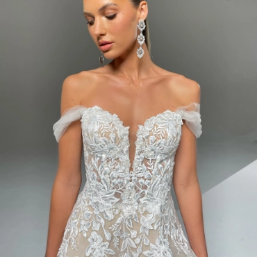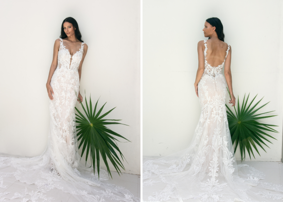 The plunging sweetheart neckline and the flattering body-contouring lace made everyone at the Fashion Event drop their jaws as soon as they saw ELIA. Another show-stopping feature? That dramatic, stunning tulle train!