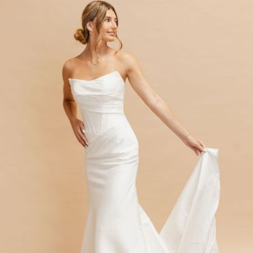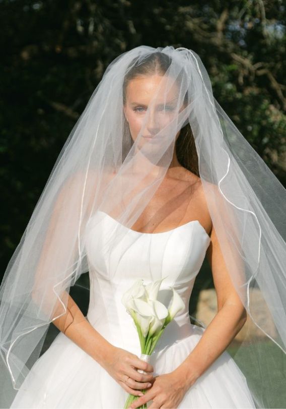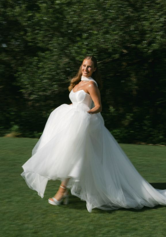 "I absolutely fell in love with the Valentina the moment I tried it on. It creates such a beautiful silhouette and has a timeless feel to it. I loved the structure of the bodice combined with the tulle skirt. The basque waist gave me the timeless, traditional feel I wanted, but the tulle skirt made me feel so ethereal and summery. I have never received so many compliments!"