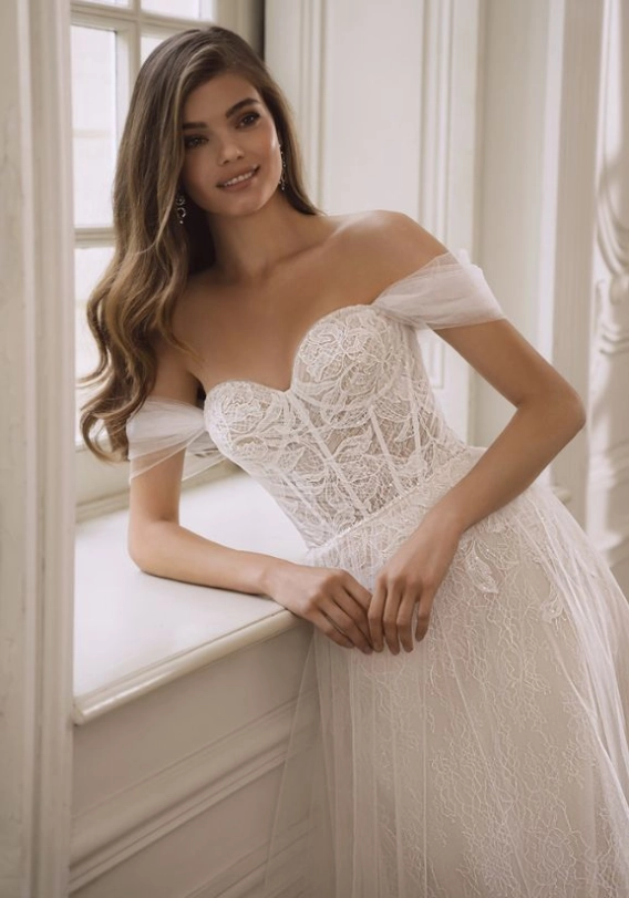 The sweetheart neckline remains one of the most popular and iconic wedding dress necklines for brides of all shapes and sizes. This neckline features a soft heart-shaped curve that beautifully frames the décolletage and collarbone, enhancing your bust and adding feminine allure. Sweetheart necklines are ideal for brides seeking a romantic, elegant, and flattering bridal gown that highlights their natural curves without being too revealing.