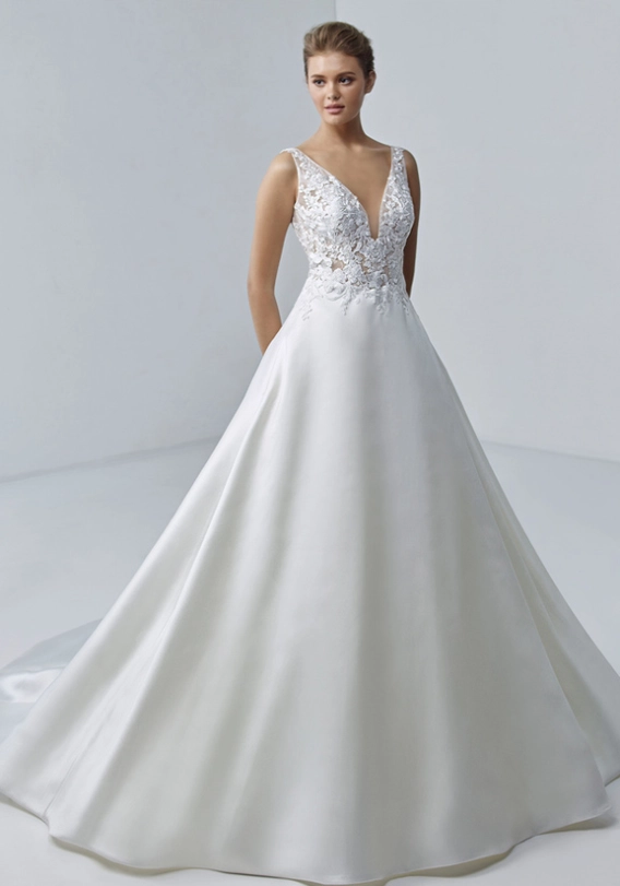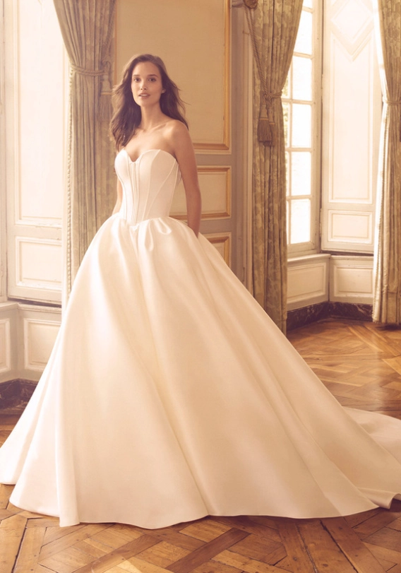 Merteuil is a modern, minimalist, Mikado dream, allowing you to move with ease on your wedding day. A more subtle style does not mean less impact – this full ball gown silhouette brings all the drama while its simple detailing means the focus remains on you!