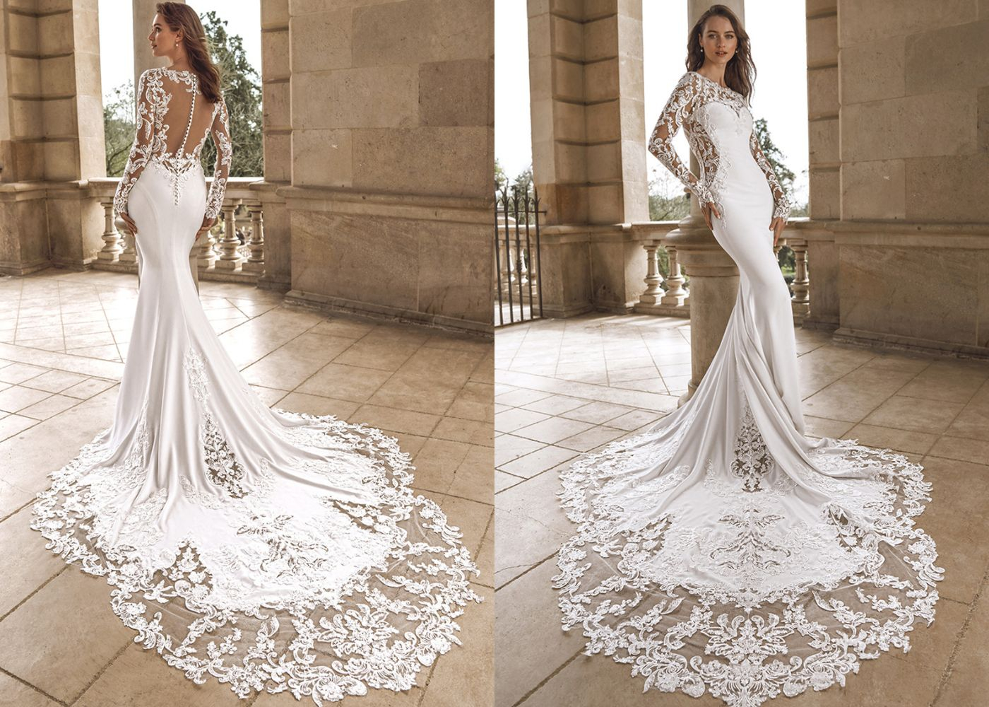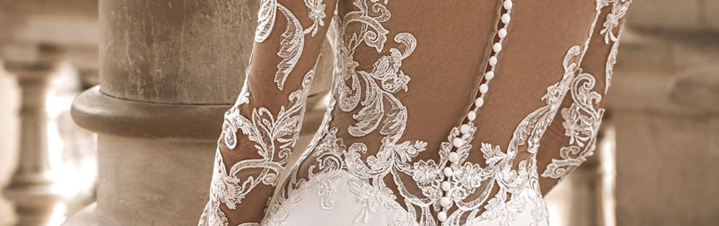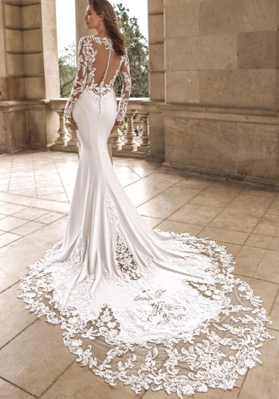 FELICIA elevates the long-sleeve gown style. The fitted bodice flows into a clean, elegant silhouette where structure meets softness. The long sleeves provide both style and practicality -- ideal for winter venues, crisp air and indoor-outdoor transitions. The neckline frames the décolletage with grace, while the tailoring sculpts the waist and elongates the silhouette for that timeless bridal poise.
