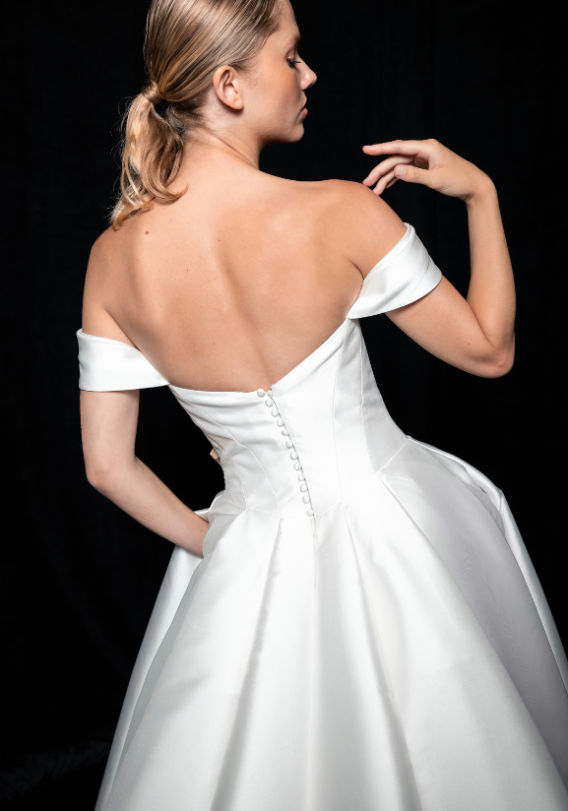 GALATEA is perfect for brides who are looking for a flattering, timeless, minimalist wedding dress. You can never go wrong with a modern Mikado mermaid gown like her.