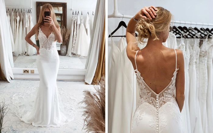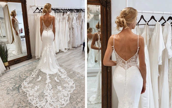 "Our favourite gown from ÉLYSÉE Bridal will have to be Yvaine. Her long train and clean lines are so beautiful, perfect for a UK or destination wedding."