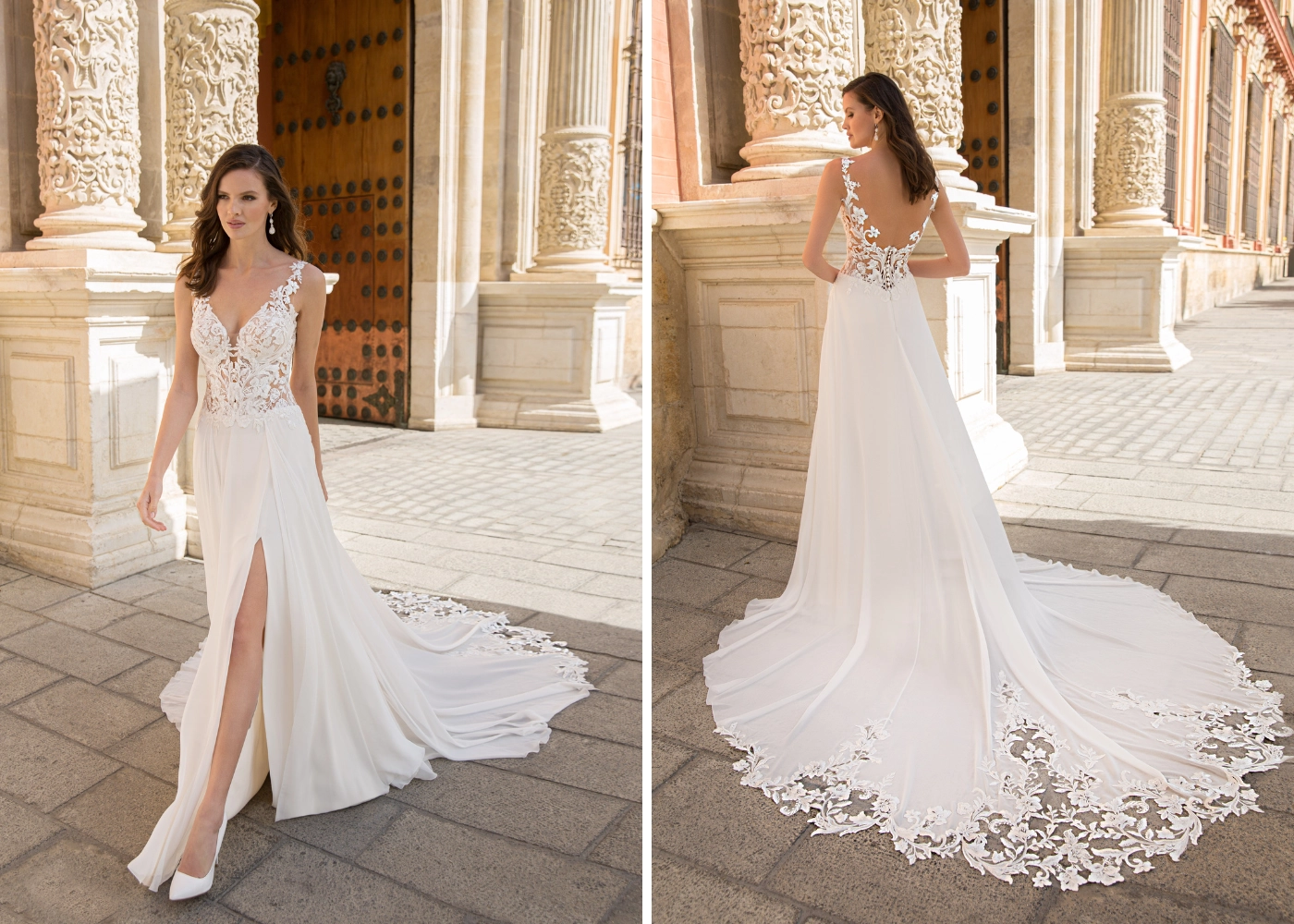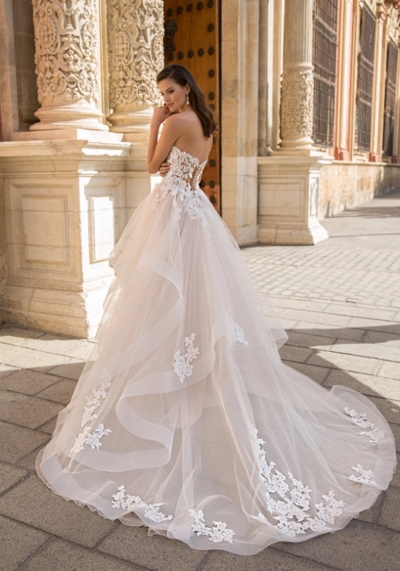 Our 2023 ÉTOILE collection is all about being light, fresh, and flirty! Just like 2023 ÉLYSÉE, the newest ÉTOILE collection showcases more skirt slits on classic A-line gowns for a modern, sexy look. Ruffled horsehair A-line skirts also amp up the fun and flirty vibes -- plus, we've got floral lace and high illusion backs that are to die for!
