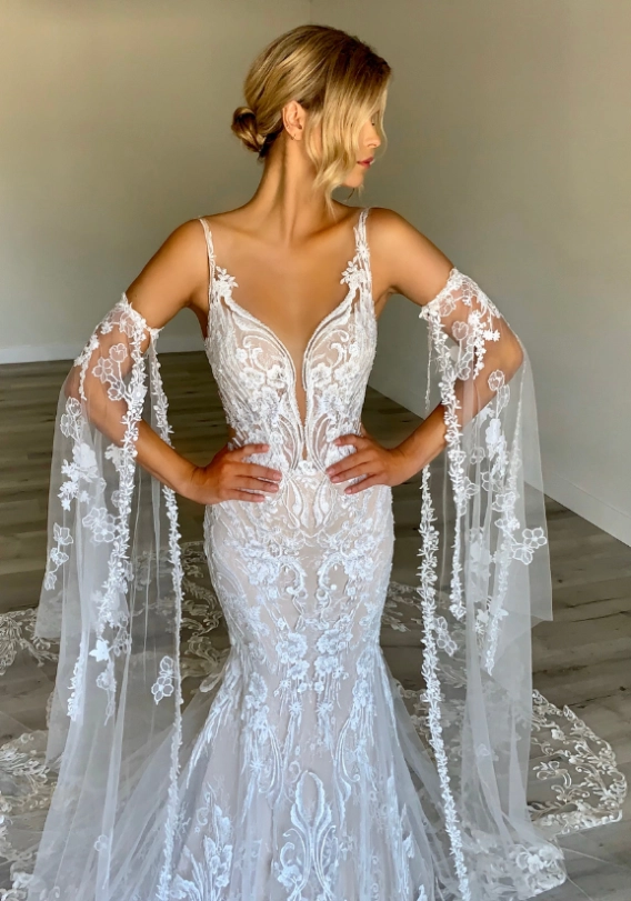 Searching for accessories that are both dramatic and dreamy? The JEANNE sleeves are perfect for adding a flowy, boho -- and breathtaking -- accent to any gown.