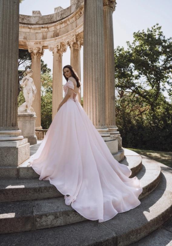 Enter into your princess era in FILIPPA! This ultra-romantic dress will be sure to make all your guests turn heads with her beautiful blush pink color. Definitely a one-of-a-kind gown for a bride who wants to step out of the bridal norm.