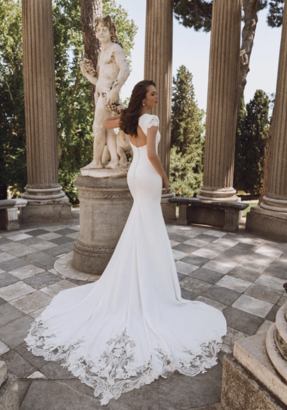 For the brides who want to a modest yet modern bridal look, EZRA is the one for you. The classic high-neckline and cap sleeves add a touch of sophistication and elegance.