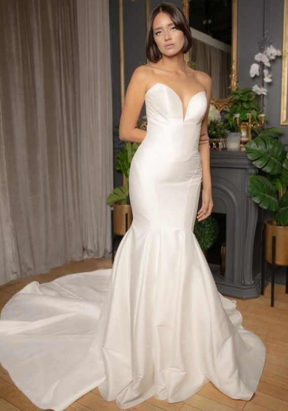 Timeless elegance, but make it modern! TOUSSAINT is the perfect balance of sexiness and sophistication. This sleek mermaid wedding dress provides structure and support for a super-flattering look.