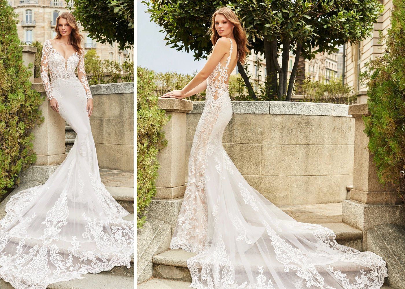 Effortlessly beautiful...CHIARA. She features an elegant, off-shoulder illusion neckline and a figure-flattering mermaid skirt silhouette leading down to a gorgeous signature ÉLYSÉE double sculpted train.