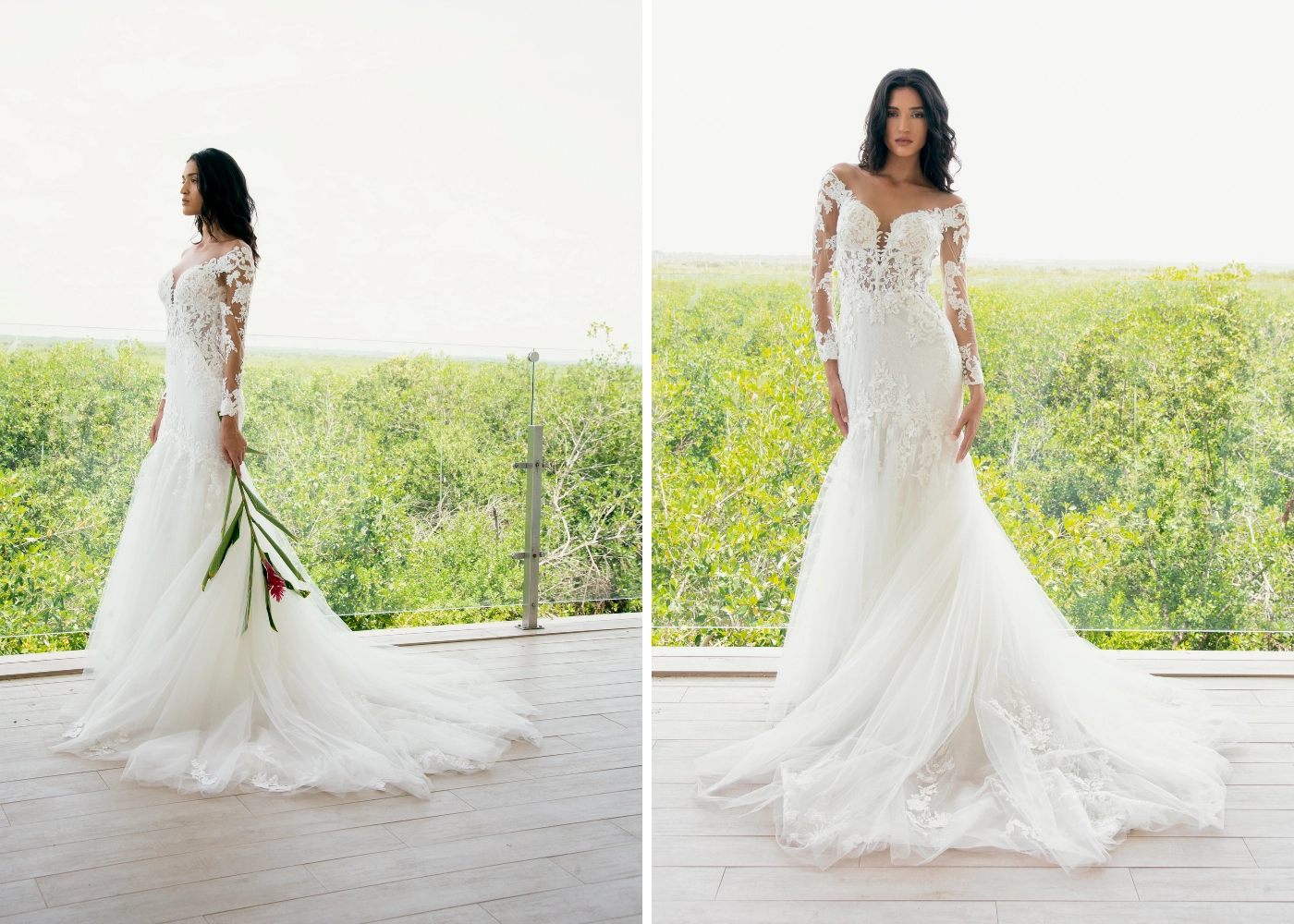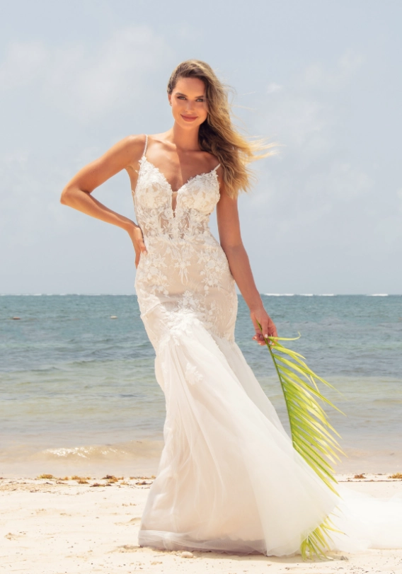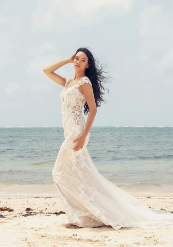 The plunging sweetheart neckline and the flattering body-contouring lace made everyone at the Fashion Event drop their jaws as soon as they saw ELIA. Another show-stopping feature? That dramatic, stunning tulle train!