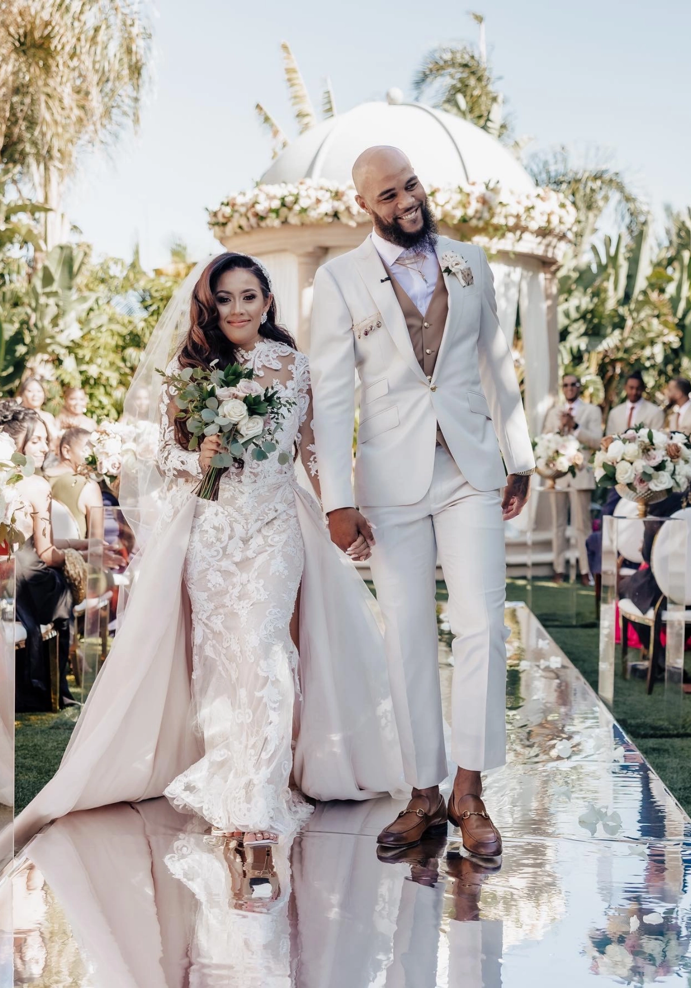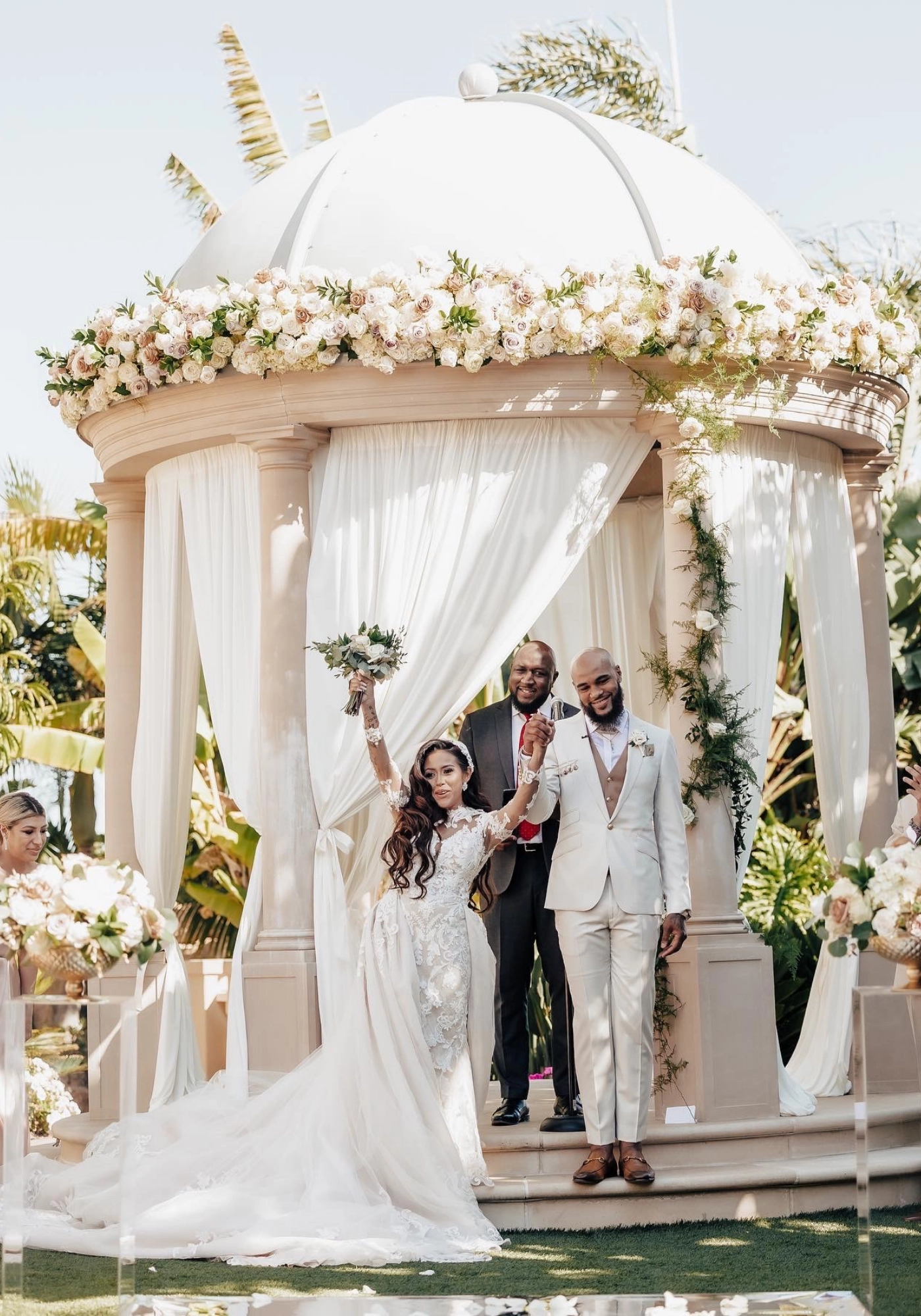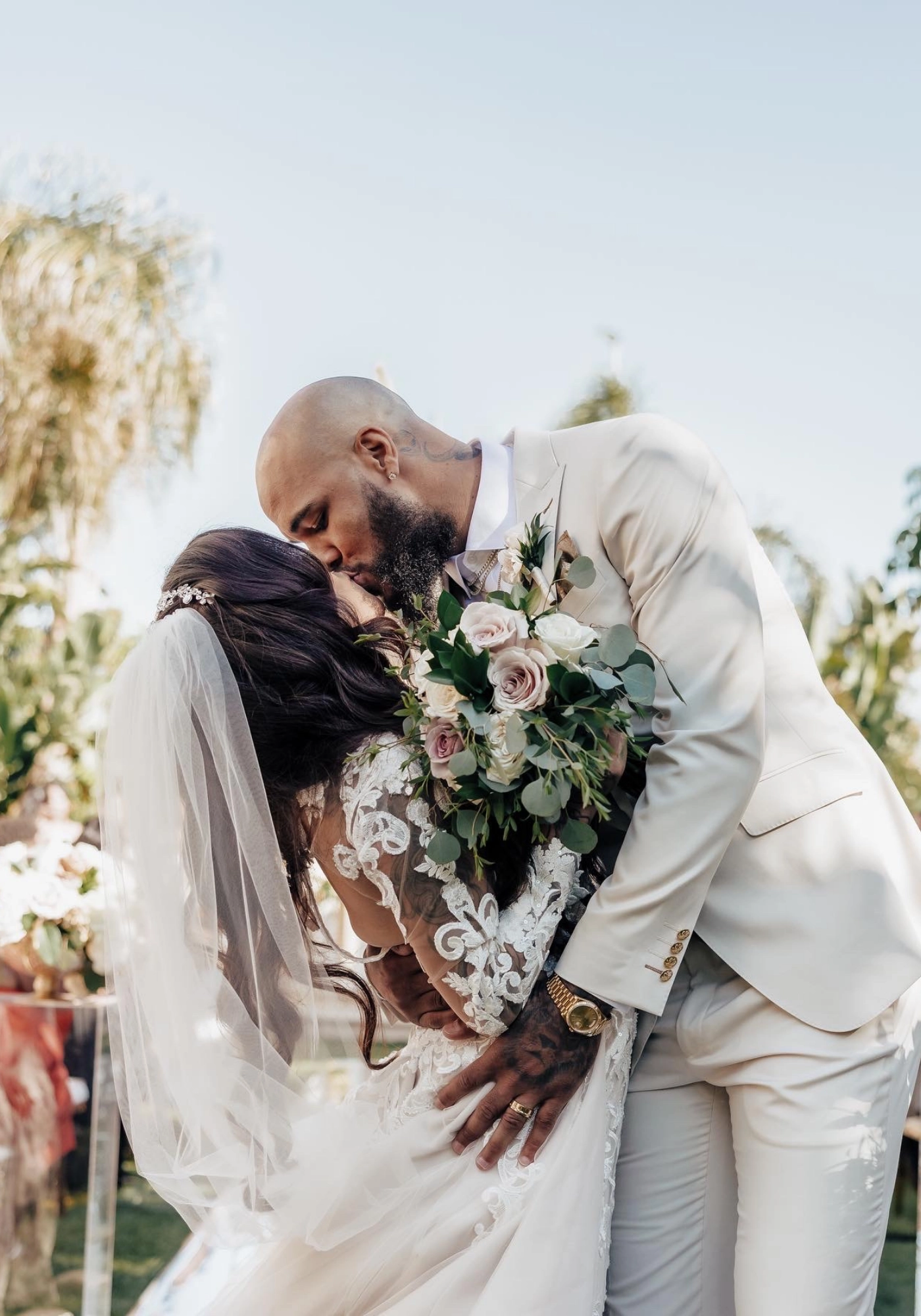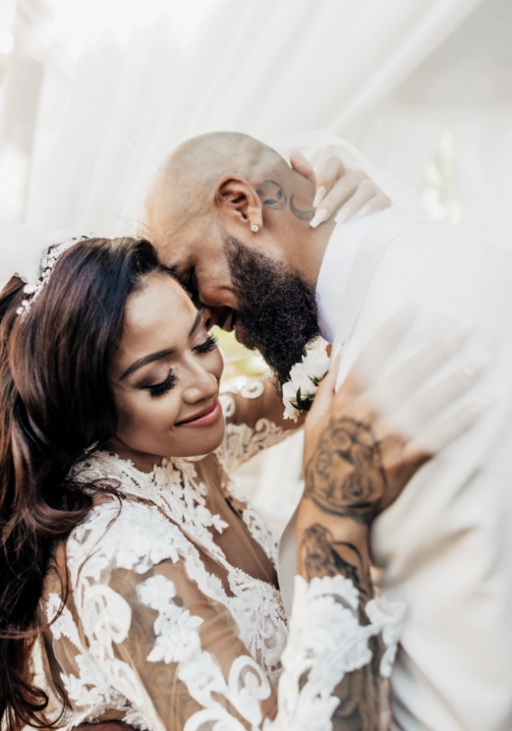 "We became friends in 2010 via FB. Fast forward to 2012, we exchanged numbers through a mutual friend and have never stopped texting each other since. We had our first daughter May 2015 and got engaged my birthday weekend May 2017. We now currently have 4 beautiful children and they were able to witness our beautiful union."