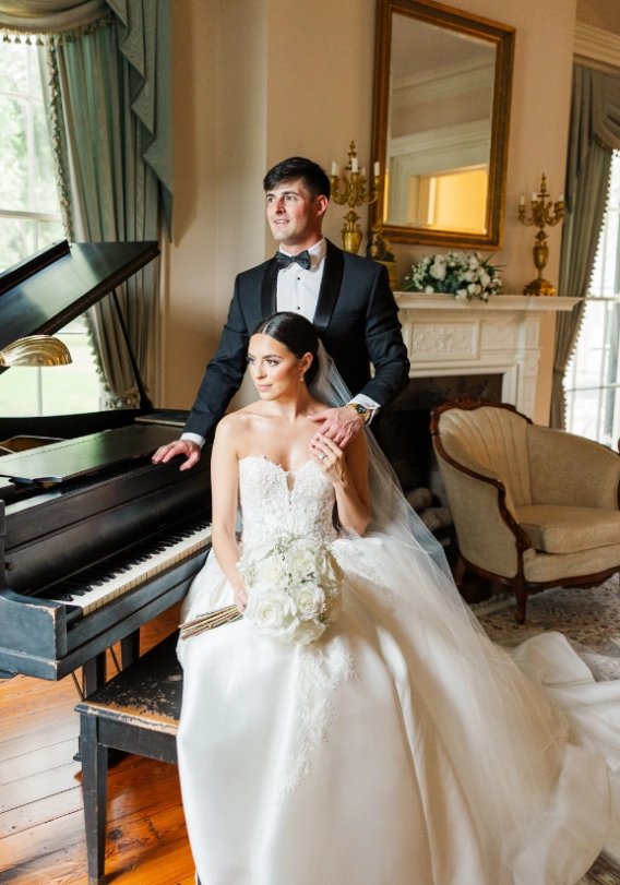 "The first time I ever saw Sam was in church, and I like to say it was love at first sight. I just had to meet him, and we connected through mutual friends. After just a few days of texting, we went on our first date, which was quickly followed by the second the very next day. From there, we only grew closer and more in love as the months went on. It didn't take very long for me to know he was the one. Like they say... 'When you know, you know.' After a year of dating, we looked at engagement rings, and 5 months later, he popped the question at a fake 'magazine cover' photoshoot for my clothing store. We started planning our dream wedding for the following year, moved in together, and continued growing our relationship through all the ups and downs of wedding planning. We celebrated our engagement season with several parties with family and friends, which was truly some of the best moments of our lives. Our wedding was a dream come true, and we will forever look back on the magical moments spent together with our loved ones."