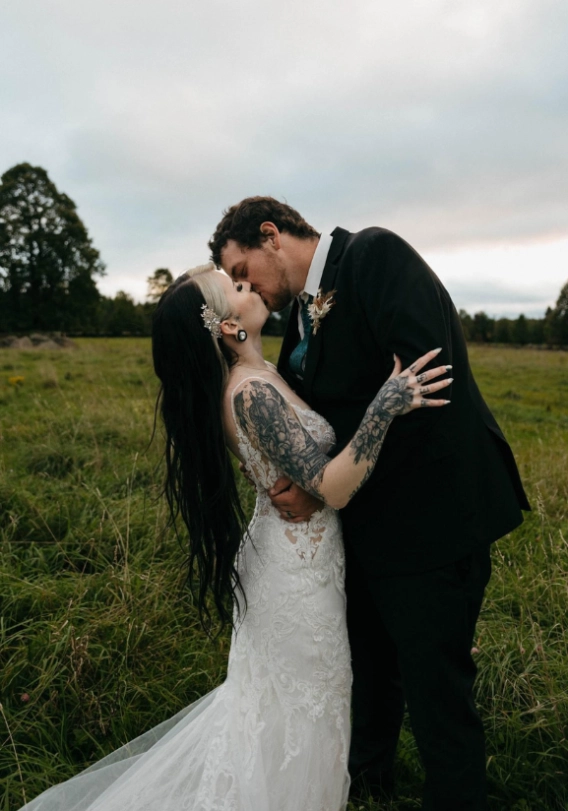 "My husband Kyle and I met through mutual friends at a house gathering 4.5 years ago. He was the shy guy and didn’t say much. We were both hoping we would see each other at the next one, but never spoke about it. One night, he kept trying to spark conversation with me. The guy who didn’t say much. I went to my sister and my friends and told them I think that guy kind of likes me. They said, 'Oh him? He’s just a really nice guy!' A couple weeks later, I went to my sister's house for the next gathering with friends, and Kyle was there. We both were the only ones in the house for a second when everyone was outside, and he looked at me and hinted to follow. We went upstairs, he grabbed me and kissed me. We’ve been together ever since. We’ve had a true connection right from the first time we laid eyes on each other."