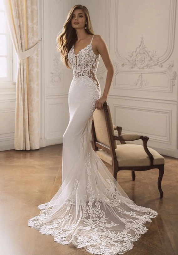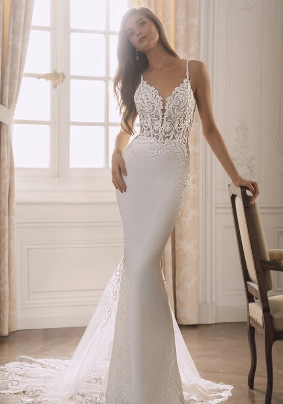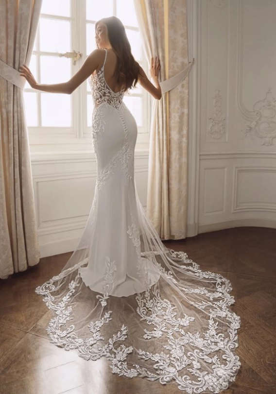 The elegant V-neckline is a signature element of FOSTER’s design. This neckline creates a flattering and soft frame around the shoulders and décolletage, enhancing the bridal silhouette while maintaining refined, timeless appeal. Whether you are walking down the aisle or posing for portraits, the V-neckline adds classic bridal beauty with modern presence.