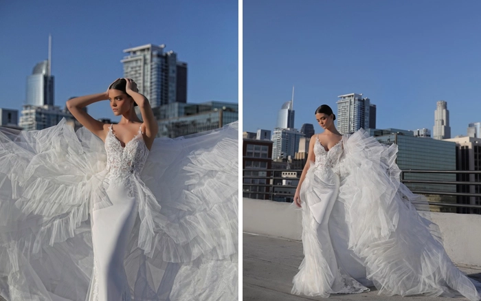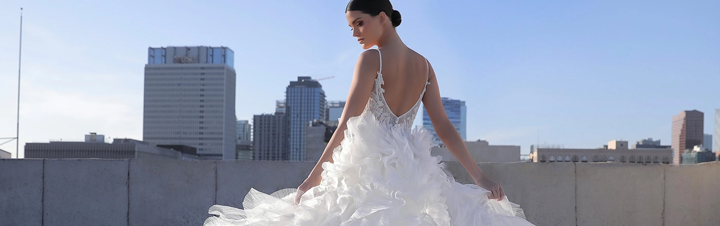 This shoot highlights how versatile the 2021 ÉTOILE collection is. No more ‘perfect for a summer wedding’ or ‘this dress is for a glam bridal look’. These gowns switch perfectly between a light and airy setting to a high fashion LA skyline. There are so many creative ways to style the stunning ÉTOILE collection to match your beautiful bridal style. Keep your eyes peeled for jawdropping accessories from ÉLYSÉE Bridal to add another dimension to your look. We love the drama and elegance!