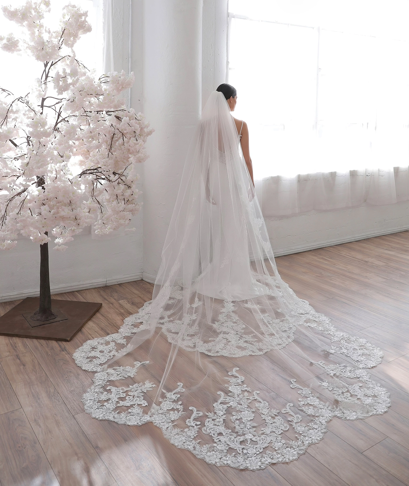 If an overskirt isn’t the accessory for you then why not add a beautiful lace edged veil for a classic and romantic look. Sabine’s lace edge is a perfect match, adding that extra special touch that you may be craving without overpowering your gown.