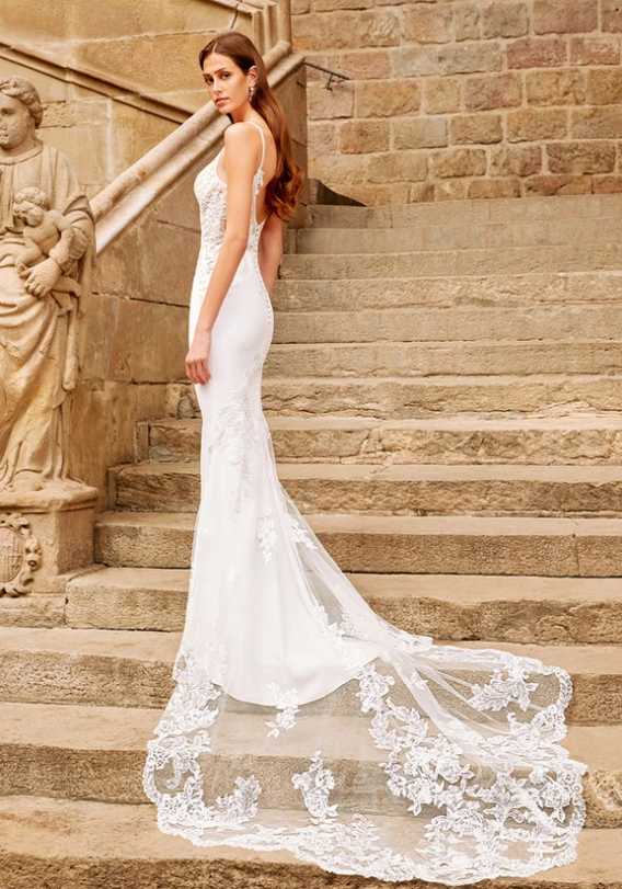 Wow, wow, wow! This magical Spanish courtyard is giving us major Bridgerton vibes! What a romantic backdrop to let the gorgeous 2021 ÉTOILE collection shine -- and they did just that. The intricate lace used in this collection is mesmerizing and beautifully emphasized against the stone backdrop. We are so excited for you to scroll through these images and get some inspo for your dream day…